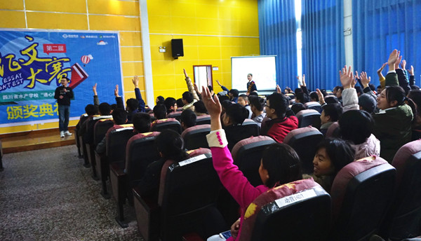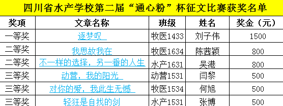 “至水校,皆為習牧者、漁者之屬。初時,余巡水校一遭,覺水校鳥語絮絮、草卉凈植、錦鱗淺池,可覺神爽氣清?!?014級畜牧專業的劉子偉同學憑借這篇文言文體《逐夢嘆》斬獲征文比賽一等獎桂冠,獲得1500元現金大獎。劉子偉是大三學生,已經到了實習時間,特意為此次活動留在了學校。領獎時,他幽默風趣,在現場與同學們互動問答,拋出“能力和努力哪個更重要?”“如何通過創新出彩?”等話題,贏得陣陣掌聲,并鼓勵同學們在校多努力、多嘗試,夢想就一定有實現的可能。