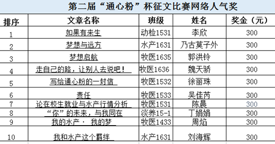 10月27日,第二屆“通心粉”杯征文比賽正式拉開帷幕。比賽期間,涌現出不少才華橫溢、文思敏捷的同學,文藝抒懷、校園小清新、復古文言文等各種文風都能輕松hold住。他們紛紛傳遞通心粉正能量,積極展示現代水產學子的別樣風采。