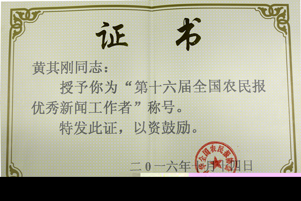與此同時,在由國家農(nóng)業(yè)部官方媒體《農(nóng)民日報》舉辦的“第十六屆全國農(nóng)民報優(yōu)秀新聞工作者”評選中,黃總榮獲“全國農(nóng)民報優(yōu)秀新聞工作者”稱號。在由《河南日報農(nóng)村版》、《南方農(nóng)村報》、《四川農(nóng)村日報》、《陜西農(nóng)業(yè)科技報》、《浙江農(nóng)村信息報》等全國各地30多家農(nóng)民報總編輯組成的獲獎名單中,《通威報》是我國唯一一家企業(yè)報獲獎代表。