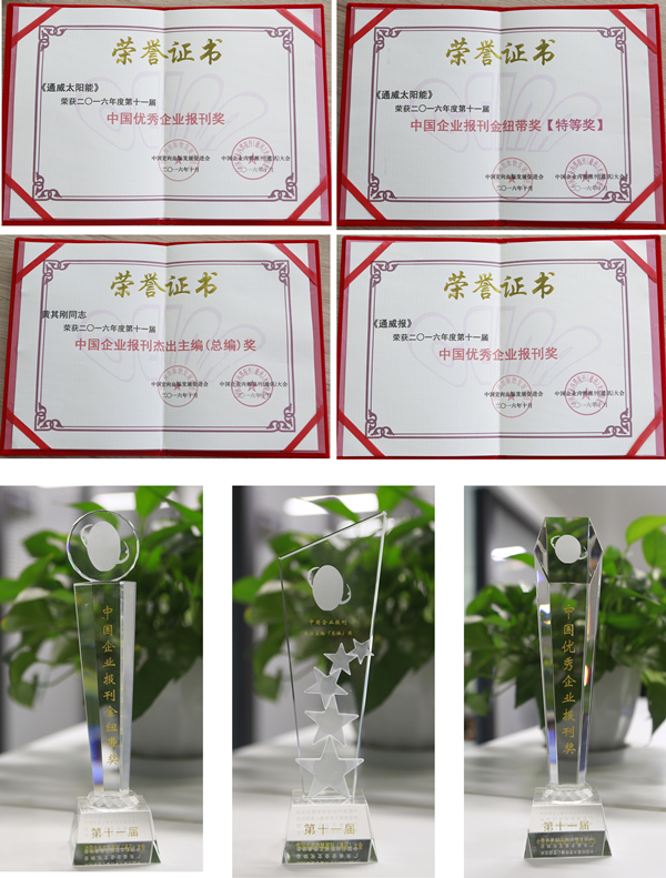 于2016年2月4日創(chuàng)刊的《通威太陽能》雜志首次參與評選,便一舉拿下 “中國企業(yè)內(nèi)部報刊金紐帶獎(特等獎)”及“中國優(yōu)秀企業(yè)報刊獎”兩項最高獎項,更是對這張集團新能源板塊“文化新名片”品質(zhì)、價值的最佳肯定和鼓勵。作為通威太陽能對內(nèi)展示、溝通的良好平臺和載體,以及對外形象宣傳的重要媒介和窗口,自創(chuàng)刊以來,《通威太陽能》雜志不斷推陳出新,突出刊物的可讀性、真實性、行業(yè)性和專業(yè)性,憑借為企業(yè)發(fā)展作出的積極貢獻,獲得業(yè)界的廣泛認可與高度評價。