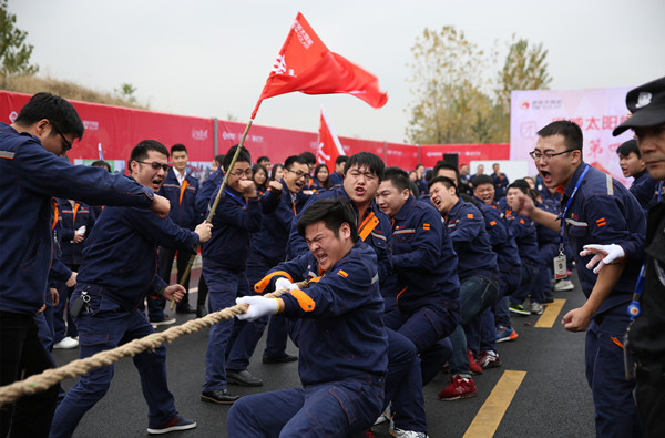 同一天舉行的合肥公司第四屆拔河比賽,激烈程度也不遑多讓。電池一廠2隊、電池二廠2隊、組件廠1隊、質(zhì)量部1隊、廠務(wù)部與計劃部1隊、職能部門1隊,共計8支隊伍400余人參加活動。