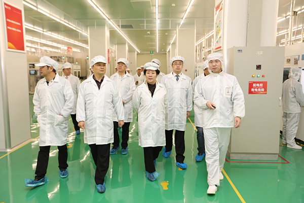 劉漢元主席陪同包瑞玲部長一行參觀S1電池生產(chǎn)車間