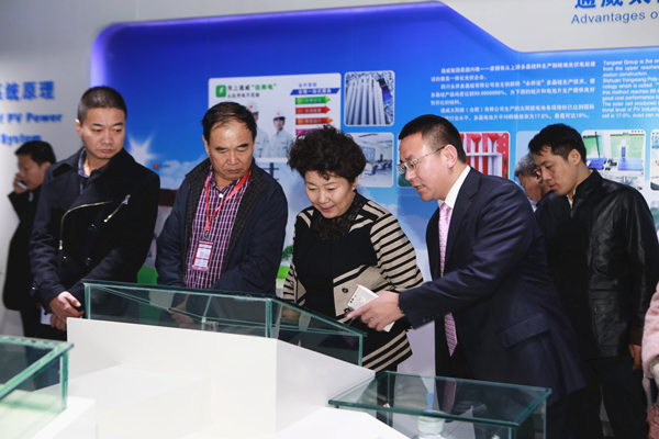 在通威集團(tuán)體驗(yàn)中心,包部長一行領(lǐng)導(dǎo)、嘉賓詳細(xì)了解了通威集團(tuán)34年發(fā)展歷程。在考察過程中,劉主席向包部長介紹了通威雙主業(yè)發(fā)展現(xiàn)狀及成果。劉主席表示,通威 “漁光一體”模式將通威兩大核心產(chǎn)業(yè)優(yōu)勢集中體現(xiàn),實(shí)現(xiàn)了我國清潔能源與傳統(tǒng)水產(chǎn)養(yǎng)殖轉(zhuǎn)型升級的有機(jī)結(jié)合,真正實(shí)現(xiàn)了“水上發(fā)出清潔環(huán)保的光伏電力,水下養(yǎng)出健康安全的通威魚”這一目標(biāo)。已投運(yùn)的如東“漁光一體”基地是通威在全國第一個真正意義上的“漁光一體”項(xiàng)目,當(dāng)前發(fā)電量超出預(yù)期。