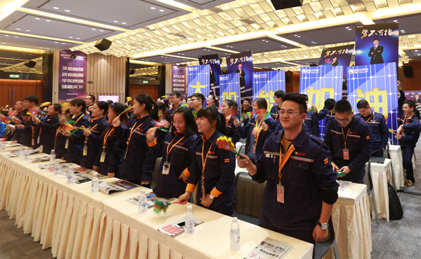 11月2日下午15時20分,第三場企業文化辯論賽開始,來自通威太陽能和永祥股份的兩支辯論隊伍雄姿英發,各自喊著響亮的口號登上舞臺。雙方的辯題是“一個人或企業的成功,是偶然還是必然?”。