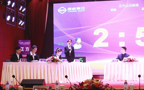 來自通威全農惠、通威新能源、惠金新能源及通威地產的四位姑娘,作為場上的顏值擔當,她們一開口就轉變了“畫風”,冷靜、沉著,思路清晰,在論戰中可謂是不動聲色之間,卻使出了致命的“溫柔一刀”。尤其是擔任一辯、肩負“隊長”重任的來自通威全農惠的楊璐璐,唇紅齒白,音色柔美,臉上始終掛著甜甜的微笑,與對方過起招來卻是綿里藏針,犀利無雙。
