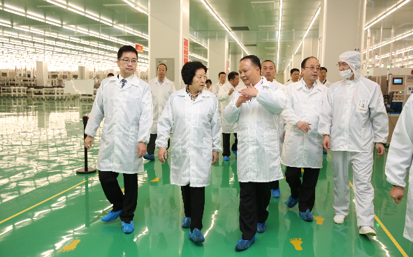 孫春蘭部長視察雙流5GW高效晶硅電池項目S1生產(chǎn)車間