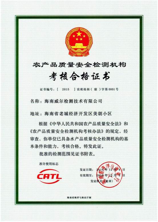 目前,海南威爾檢測(cè)已取得了CNAS(國(guó)家認(rèn)可委實(shí)驗(yàn)室認(rèn)可)、CMA(計(jì)量認(rèn)證)、CMAF(食品檢驗(yàn)機(jī)構(gòu)資質(zhì)認(rèn)定)、CATL等證書,成為海南省資質(zhì)最全的第三方檢測(cè)公司。