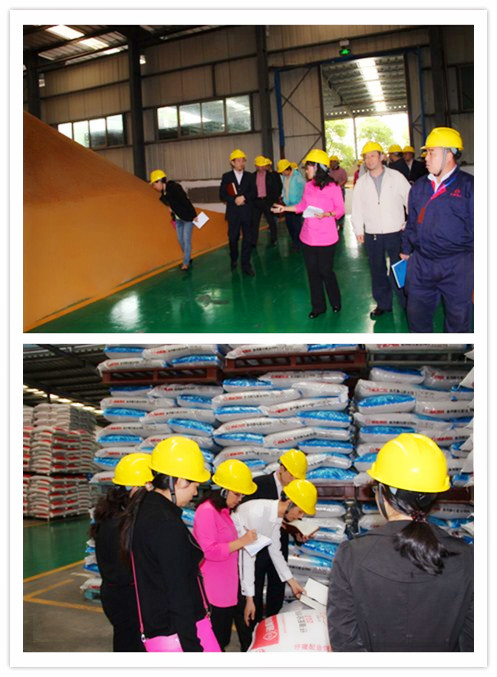 中糧領導一行在原料庫房現場考察,陪同考察的有股份副總裁、江淮片區總裁兼江浙片區總裁宋剛杰、生產部副部長喻述武、品管部部長助理董秀洪、畜禽市場部經理王進仕、畜禽研究所配方師張茂華、豬料督導小組組長師陽和成員祝丹。