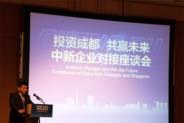 為認(rèn)真落實(shí)國(guó)家關(guān)于中新合作“互聯(lián)互通”戰(zhàn)略,貫徹成都市委市政府《關(guān)于加快建設(shè)服務(wù)業(yè)核心城市的意見(jiàn)》,為企業(yè)搭建高品質(zhì)商務(wù)樓宇招商展示平臺(tái),市商務(wù)委、市投促委、市外事辦于2015年5月19日-22日在新加坡舉辦了“中新合作、成都門(mén)戶-成都現(xiàn)代服務(wù)業(yè)暨商務(wù)樓宇推介活動(dòng)”。市政府副市長(zhǎng)傅勇林出席,集團(tuán)副總裁黃其剛、通宇物業(yè)副總經(jīng)理崔維順全程參加,通威國(guó)際中心等19個(gè)高品質(zhì)商務(wù)樓宇亮相新加坡。