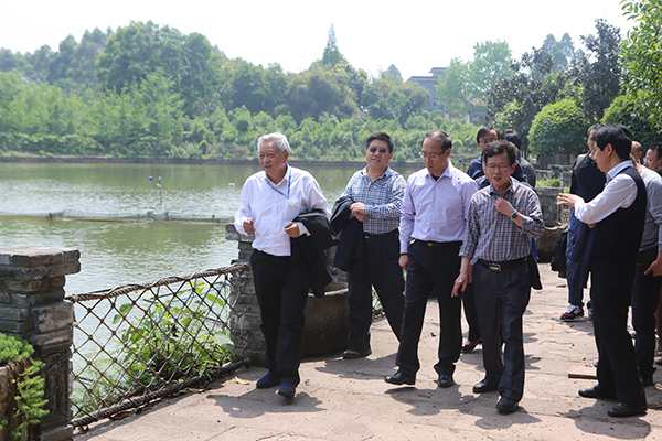 李全錄副局長(zhǎng)一行首先來(lái)到位于成都市雙流縣的丹龍漁業(yè)養(yǎng)殖專業(yè)合作社,重點(diǎn)走訪了合作社的錦鯉養(yǎng)殖基地。據(jù)悉,該基地占地200余畝,錦鯉養(yǎng)殖面積達(dá)80畝,是集休閑、娛樂(lè)、餐飲、錦鯉養(yǎng)殖為一體的現(xiàn)代生態(tài)農(nóng)莊。該合作社帶頭人李成龍介紹,2013年,合作社與通威合作實(shí)施底排污技術(shù),當(dāng)時(shí)就是由吳宗文老師具體指導(dǎo)。