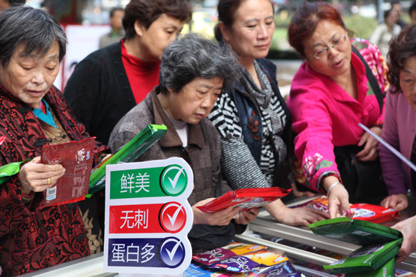 此次新品上市發布會,通威一共推出純魚肉魚丸系列、三分鐘微波系列、火鍋魚皮系列等近20多種海南純生鯽魚產品。品類之繁多、質量之上乘均為國內新品上市發布會之最。有魚肉含量高達80%以上的純魚肉丸,有烹調只需3分鐘的美味微波魚片,有鮮美酥脆的面包魚條,有富含膠原蛋白的火鍋魚皮……各種新產品琳瑯滿目,引發了消費者的陣陣驚嘆。記者隨機采訪了正在現場試吃的王女士,她興奮地說到:“早就聽說過通威海南純生鯽魚的大名了,期盼了好久,今天一嘗果然名不虛傳啊,特別是三分鐘的微波魚片,烹調方便味道好。現在成都有得賣了,以后天天都可以吃到。而且今天高興的事還不止這一件,兩個月前我就收到通知說我中了通威食品的回饋獎勵,當時我還在想這事是不是真的,結果今天真的當場給我發了500元的獎金,通威真是一個誠信的企業,這樣的企業推出的產品才能夠讓人放心。”